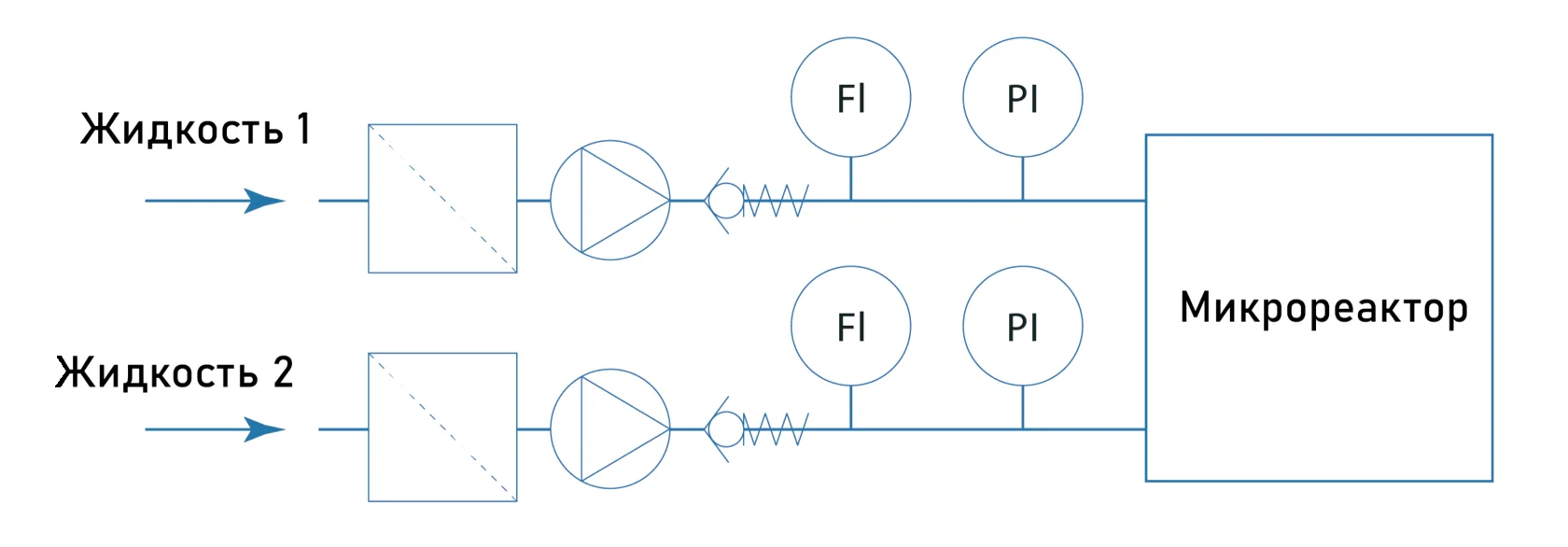 - Быстрое перемешивание: в проточном микрореакторе в отличие от стандартного перемешивание происходит за счет молекулярной диффузии, так что можно избежать градиента концентрации.
